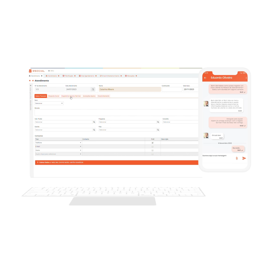 A funcionalidade de Atendimento da plataforma eSOCIAL facilita o registo e a gestão de processos de atendimento social, incluindo encaminhamento interno, comunicação via chat e gestão de marcações. É uma ferramenta que centraliza informações e otimiza a comunicação e a organização dentro da instituição. Este módulo é essencial para organizações que procuram melhorar o fluxo de atendimento e a colaboração entre as equipas.