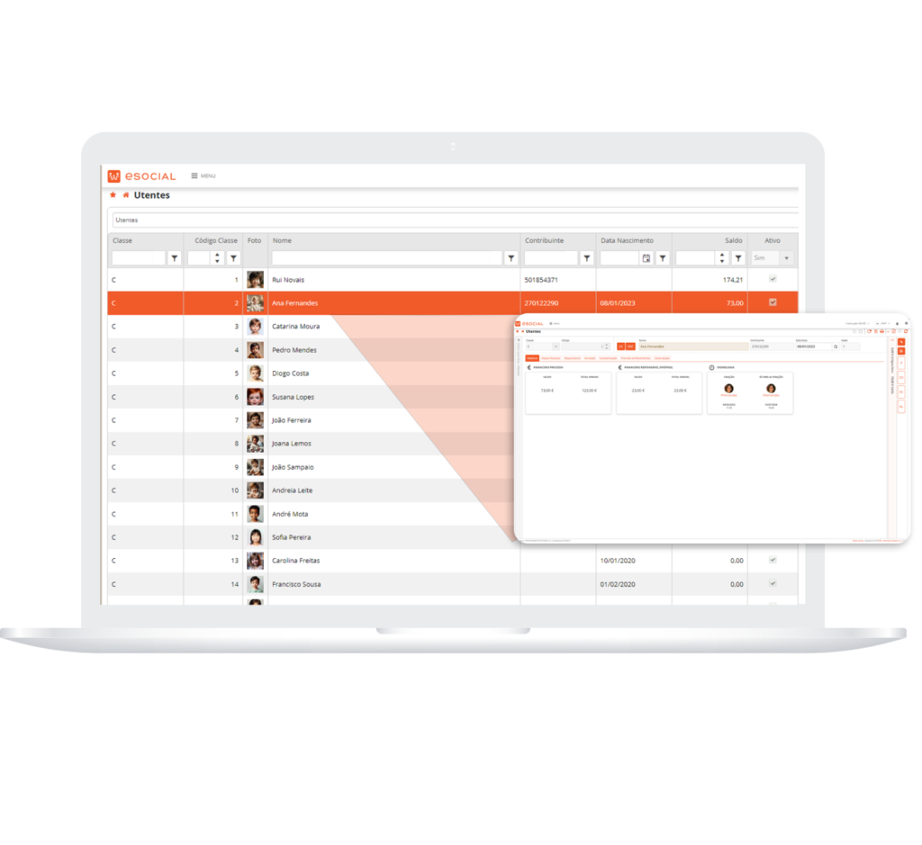 Facilite o registo e a gestão completa dos dados pessoais de utentes e candidatos, de forma a centralizar todas as informações necessárias para uma administração organizada.